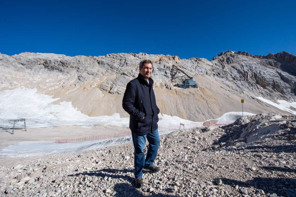 Oben angekommen: Söder besucht auf seiner „Klimatour“ im September die Zugspitze, um sich über das Tauen der Gletscher zu informieren.