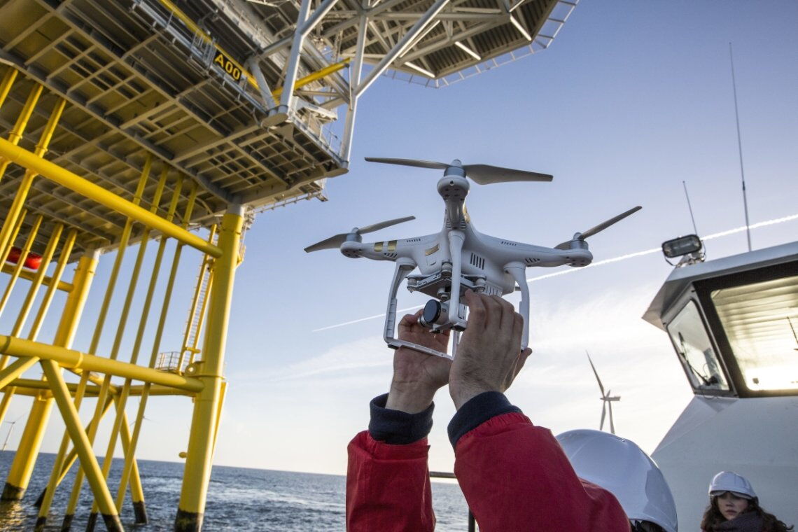 Drohnen könnten in Zukunft Material oder sogar Techniker in die Offshore-Windparks tragen.