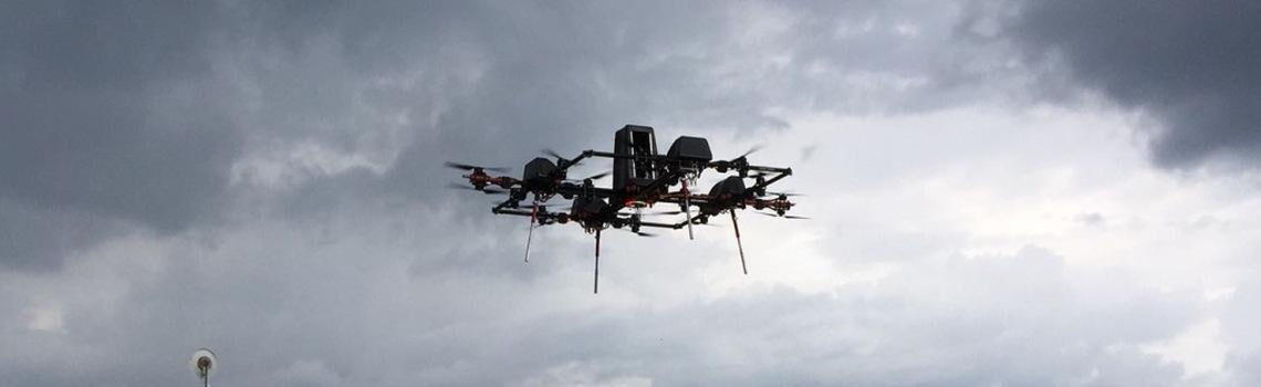 Janis Putrams: Unsere Schwerlastdrohne ist verglichen mit anderen Modellen komplett anders aufgebaut. Sie wiegt 90 Kilogramm und kann selbst bis zu 200 Kilogramm tragen. Das einzige Element daran, dass sie mit den Drohnen von Hobbyfliegern verbindet, ist die Fernsteuerung. Unsere Drohne ist über ein Kabel mit einer Stromquelle am Boden verbunden, sodass sie dauerhaft in der Luft sein kann. Ein Batteriebetrieb ist aber auch möglich, dann fliegt sie bis zu 16 Minuten.
